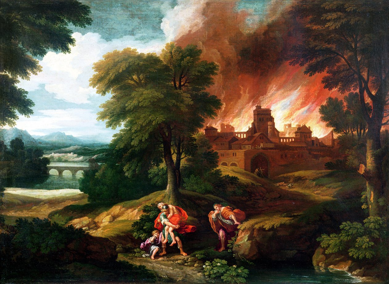 O Incêndio de Troia por Nicolas Poussin